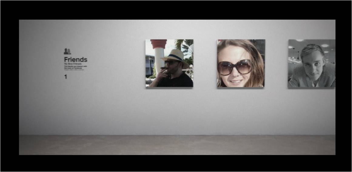 Det hela är egentligen ett extremt vackert, överblickbart och snabbt (kopplingen till Intels produkter snabbladdande processorer) sätt att sortera upp och illustrera ditt Facebook-konto. Från Vänner, via bilder, videos och ord till en extremt snygg final där milder i ditt konto bildar en mosaik som ger din profilbilt. SNYGGT!!