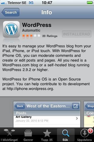 Laddade ner WordPress-appen, vilket öpnnar för – tadaa – mobilbloggande. Känns skönt fjortis/modeblogg.