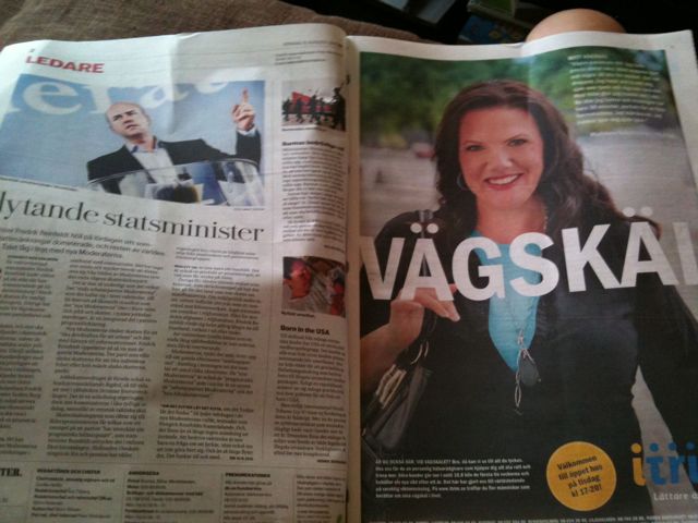 Sidan 3 i dagens DN, en månad innan valet.. Mittemot en ledare om Reinfeldt.. Med en kvinna som tittar leende in i kameran ock en snaskig ”VÄGVAL”-text tvärs över.
