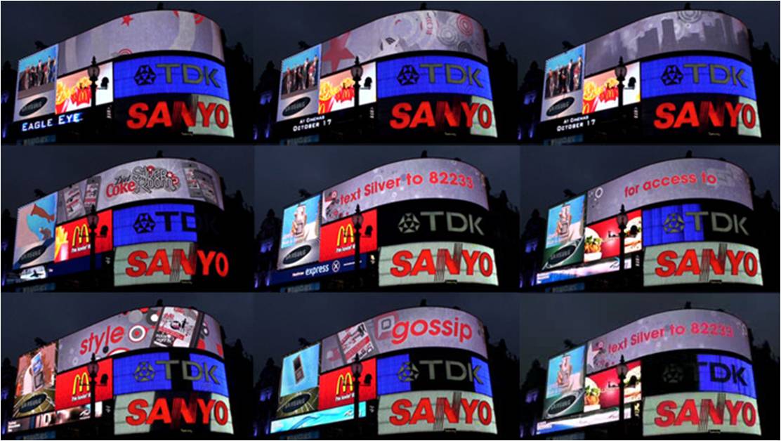 Äldst av annonsörerna på Picadilly är Coca Cola, som dock skaffat en digital skylt och jobbat med uppgraderade budskap, de har bland annat drivit trafik till sin mobila tjej-community (ett samarbete mellan Coke Light och Cosmopolitan). Troligtvis tas väl Sanyos plats av någon som kan jobba på ett liknande, lite mer aktivt och integrerat sätt.