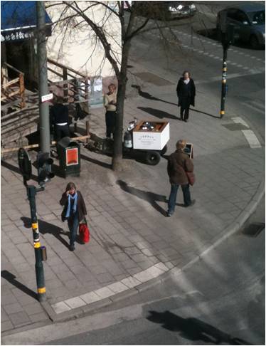 Gluttade ut från fönstret från Carats kontor idag och hände mig nästan förflyttad till Brooklyn; En sopp-försäljare på flakmoped!!