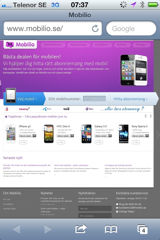 Nog måste de då ha byggt en mobilanpassad hemsida? Tydligen inte..